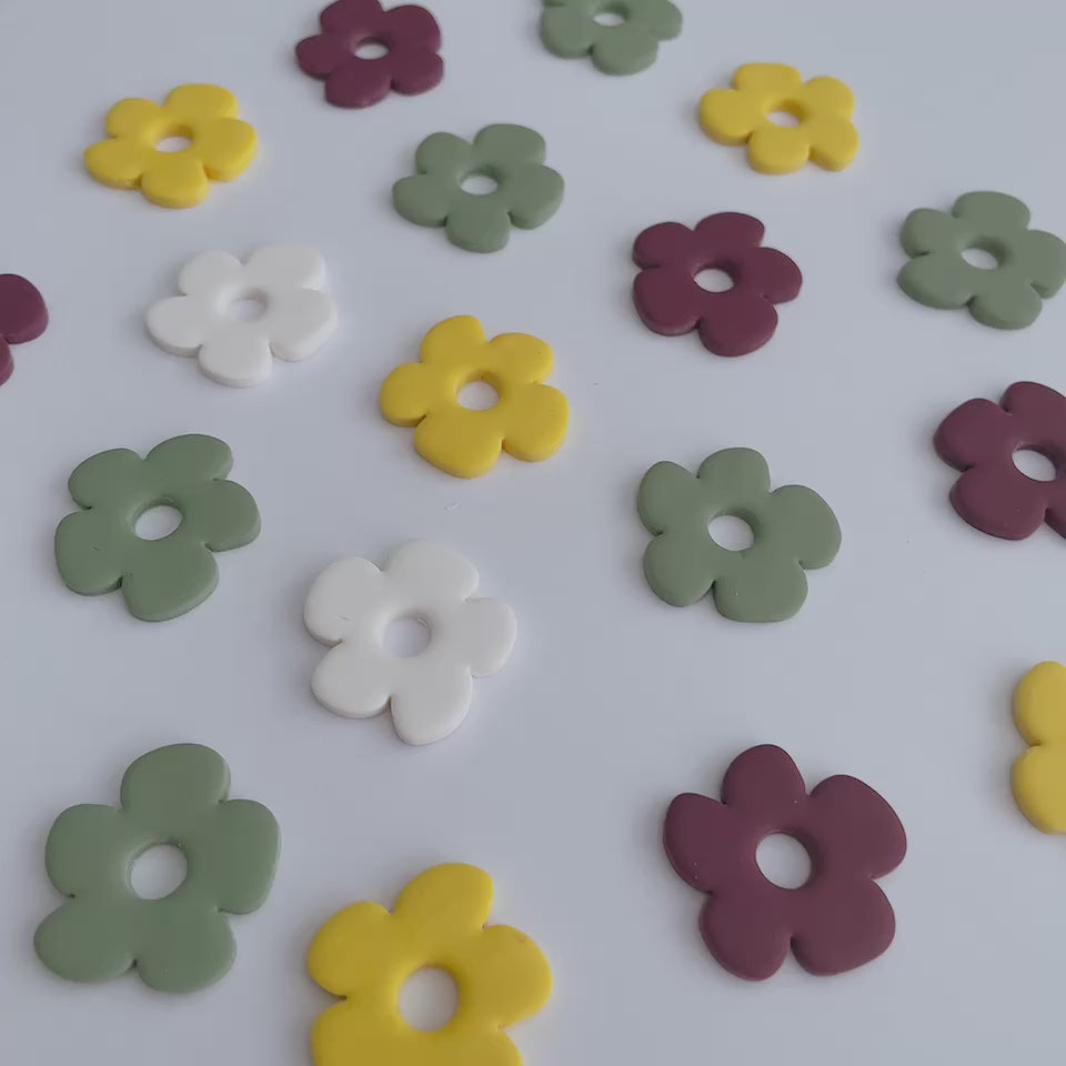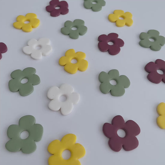 These chunky flower stud earrings are handmade from lightweight polymer clay, designed to bring a playful retro vibe to your everyday look! Each pair is individually crafted in small batches from my little studio in the UK.